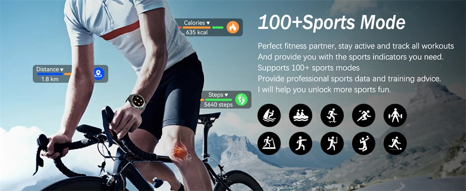More than 100 sports modes: The watch supports more than 100 sports modes. The watch will record the exercise data comprehensively and conduct scientific analysis. It is based on accurate real-time heart rate detection and artificial intelligence algorithms to ensure more efficient and safer exercise.