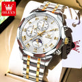 Men’s Luxury Chronograph Quartz Watch – Moon Phase, Waterproof, Stainless Steel